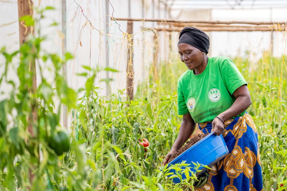 One of the farmers at the greenhouse is Anthonia Nyiransengiyaremye, 61, a single woman who found herself caring for her malnourished grandchildren after her daughter was diagnosed with HIV and moved out.