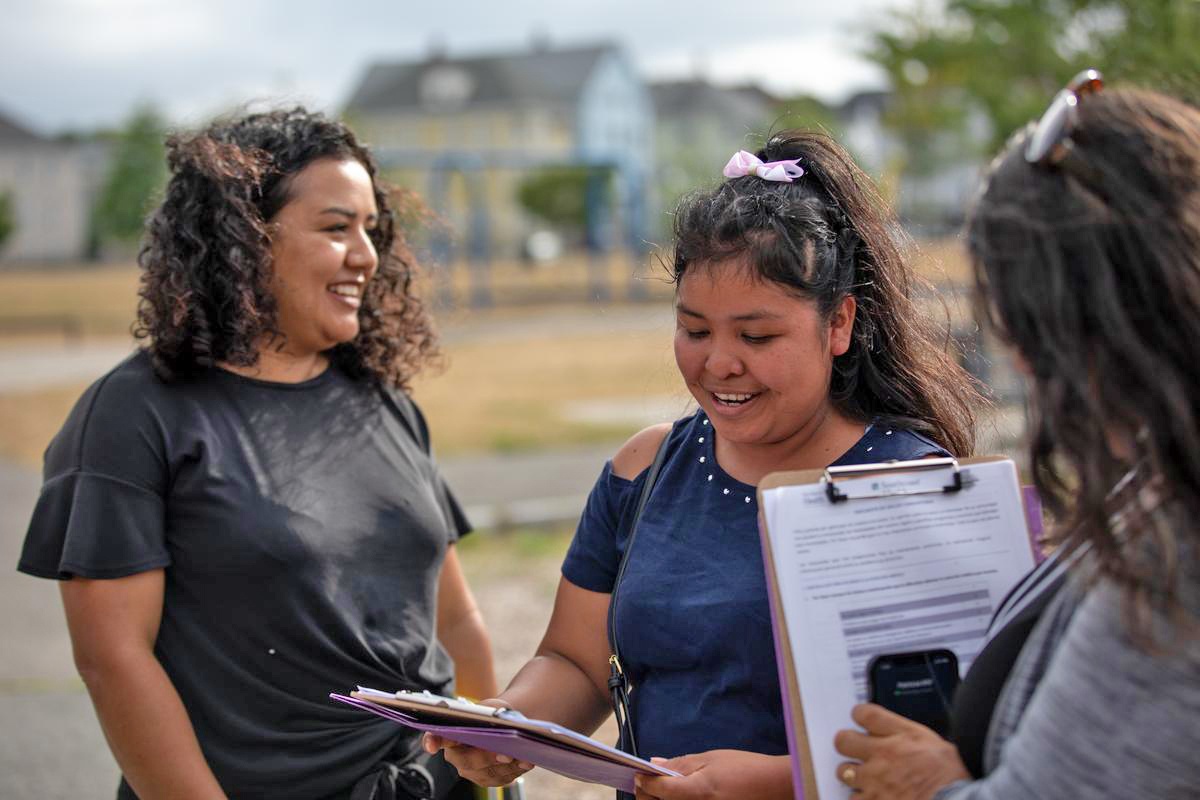 Promotora Isabel Gomez Hernandez surveys community members in New Bedford to assess their health care needs. Photo: Zack DeClerk / PIH