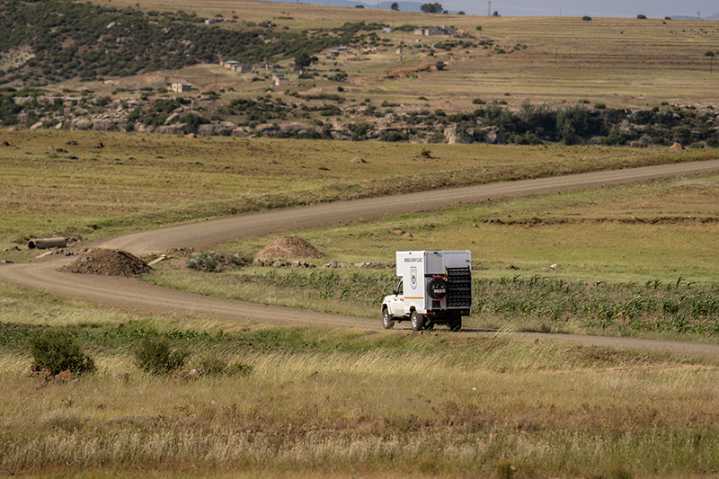 A mobile X-ray truck travels through Mohale's Hoek District, Lesotho on Jan. 19, 2026. Photo by Justice Kalebe / PIH