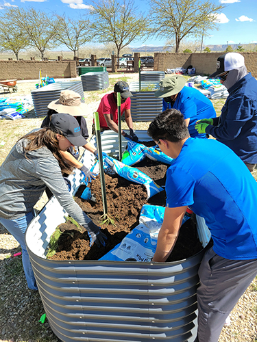 At eight different locations, COPE helped prepare and plant garden beds alongside community members and partners. All beds included a mixture of vegetables, herbs, and flowering plants that encourage pollinators. Many also included regional varieties of corn and squash that are traditional to Navajo and other Indigenous Nations in the Southwest.