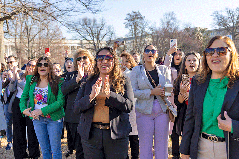 Participants cheer on speakers making remarks outside of the Capitol Building as part of the CHW rally.