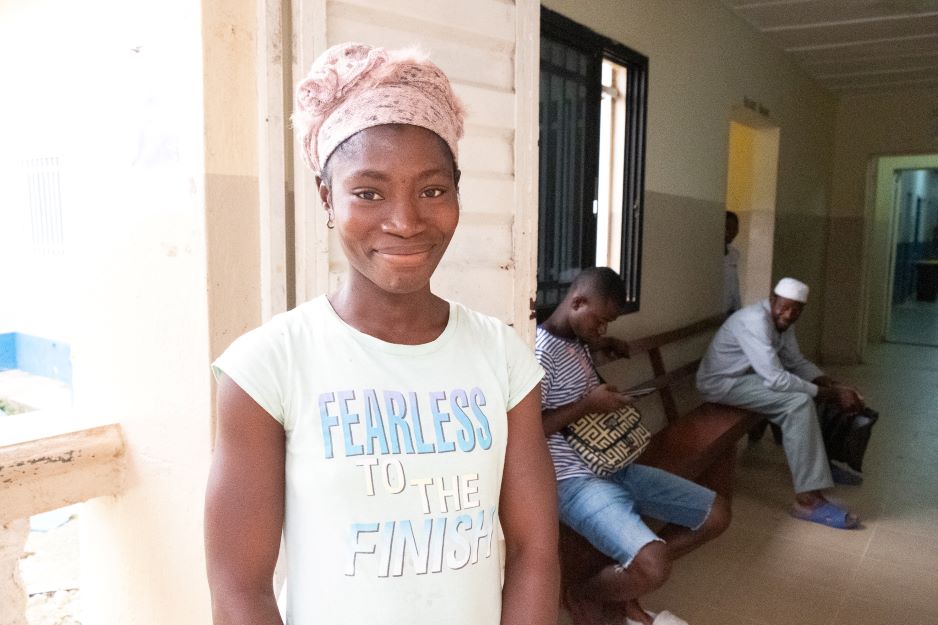 Margaret, poised to be Koidu Government Hospital's first patient to survive choriocarcinoma, pictured at the PIH-supported facility in Kono, Sierra Leone. (Photo by Emma Minor / PIH)