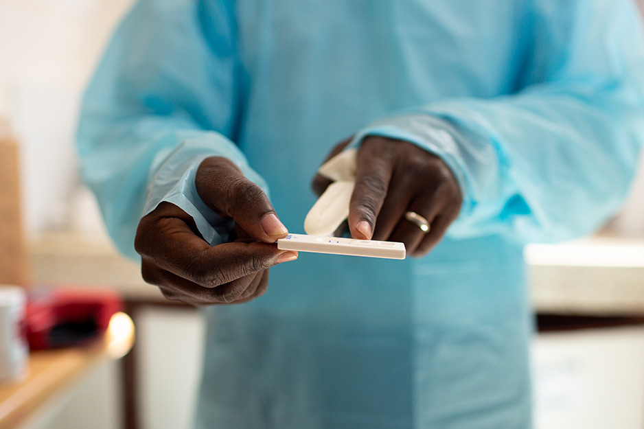 Chimpeni did Chisomo’s malaria test that morning. Malaria tests take about five minutes, he said, and require a blood sample placed on a small test strip.