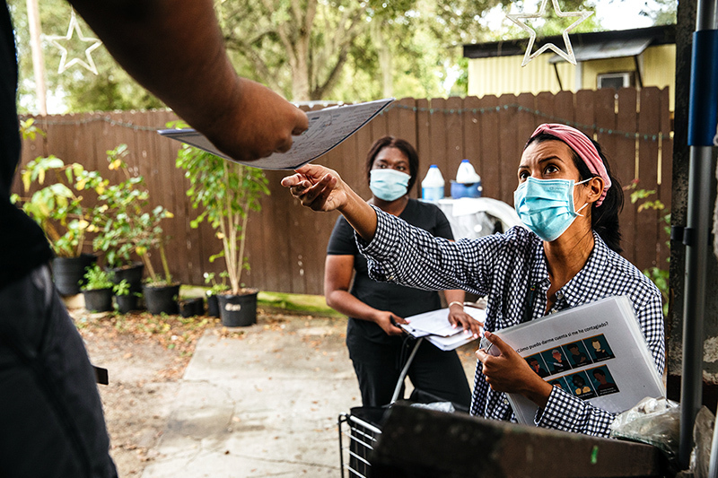 In rural Immokalee, Fla., the Coalition of Immokalee Workers, an organization of migrant and essential workers disproportionately hit by COVID-19, partnered with Healthcare Network, the local Federally Qualified Health Center, to establish a new community health workforce to go door-to-door supporting those most at risk, to expand access to testing, and to register and help transport eligible individuals to vaccination programs.