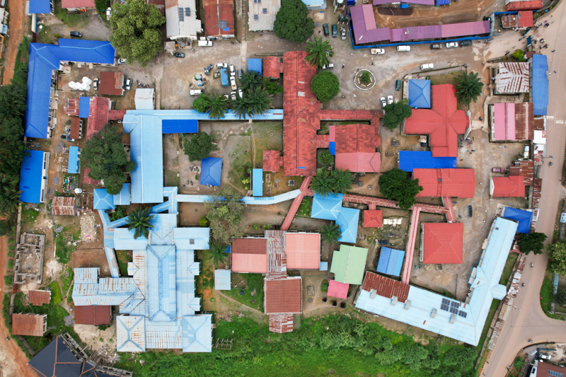 An aerial view of the campus of Partners In Health-supported Koidu Government Hospital in Kono District, Sierra Leone. Photo by Abubakarr Tappiah Sesay / PIH