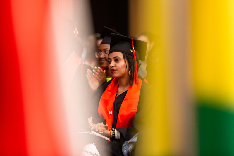 Ekram Hussien Ahmed, a graduate from the Gender, Sexual and Reproductive Health track at the University of Global Health Equity, attends her graduation ceremony in Kigali, Rwanda, in August. Photo by Serrah Galos for UGHE
