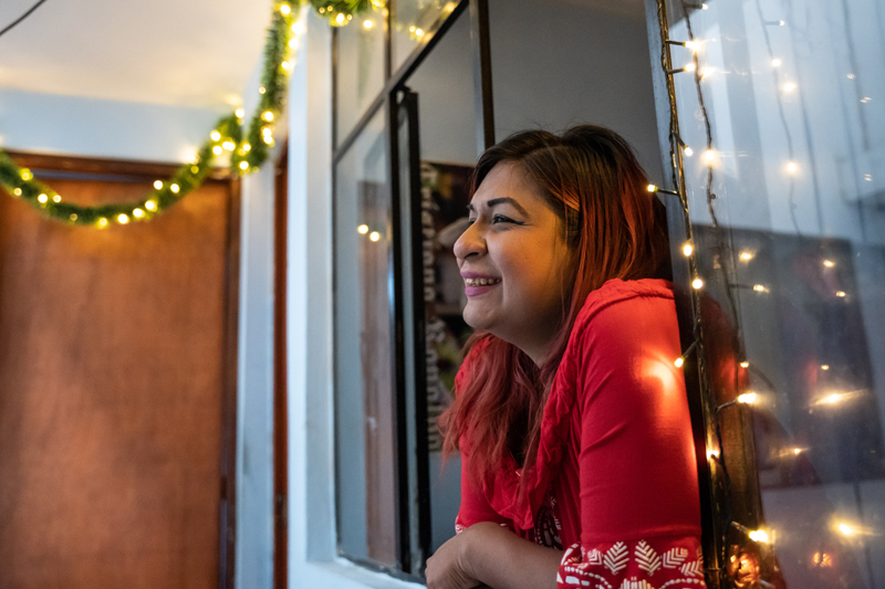 Brenda Mijahuanca looks out the window of her apartment in Lima, Peru. Photo by Diego Diaz Catire / PIH