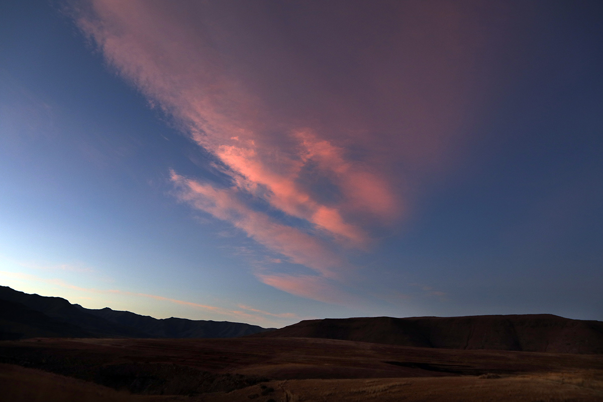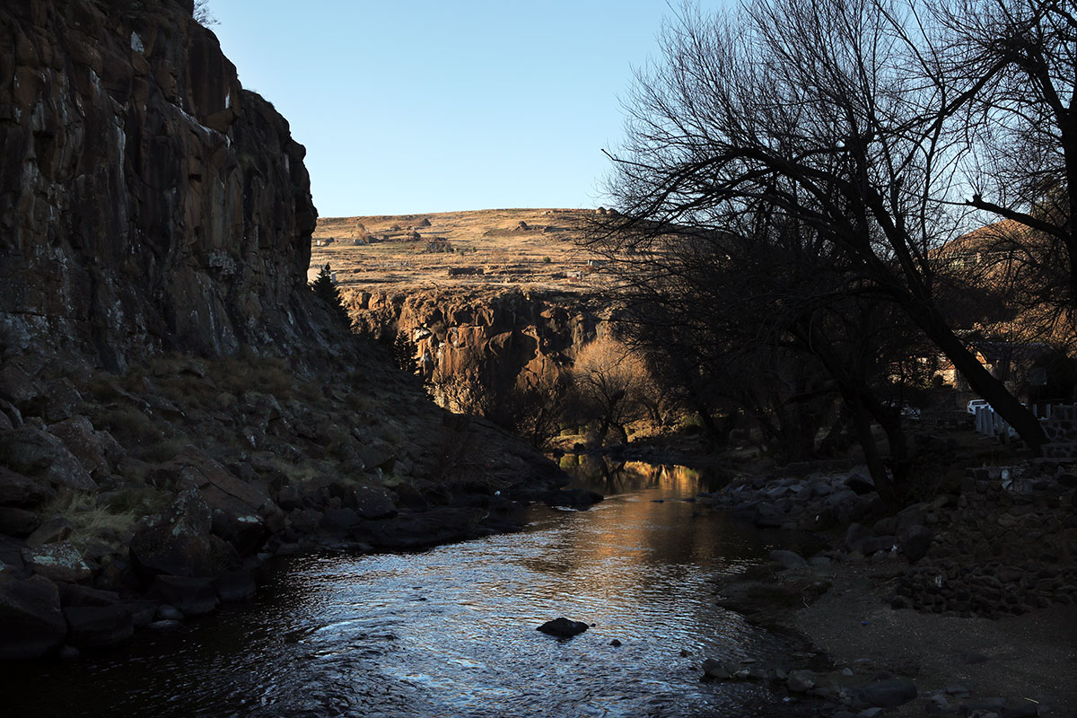 Our first pit stop was at a lodge in Semonkong, in the center of the country, high in the mountains. Semonkong means "site of smoke" in Sesotho, the local language, deriving its name from the mist of the famous Maletsunyane Falls nearby. Unfortunately, viewing the waterfall itself requires a half-hour hike from the lodge, and we were in such a hurry to cross the country with enough light left in the day that we had no time for tourism. As Lesotho is in the Southern Hemisphere, August days are rather short.