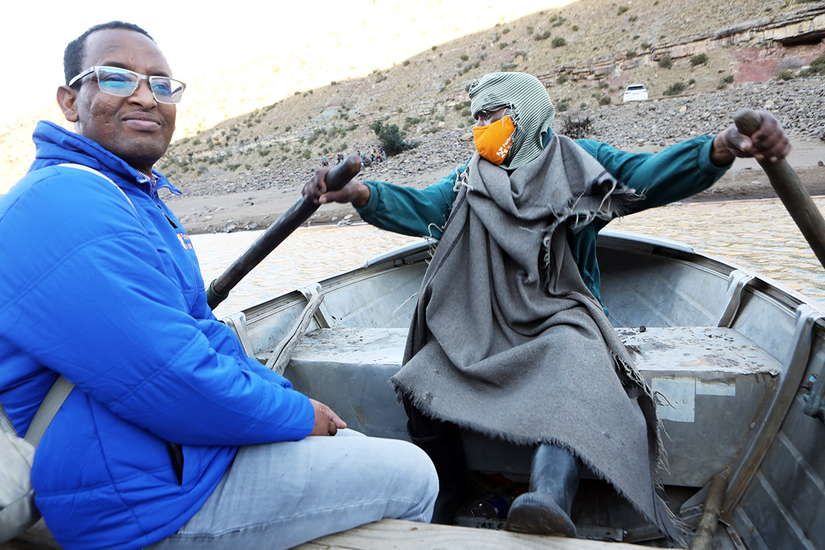 After an hours-long final stretch over rock-strewn, deeply rutted roads, we reached the Senqu River. On the shore we met Mahase, a PIH employee, who helped us into his boat and rowed us to the other side, as he did all travelers who sought health care at Lebakeng Health Center.