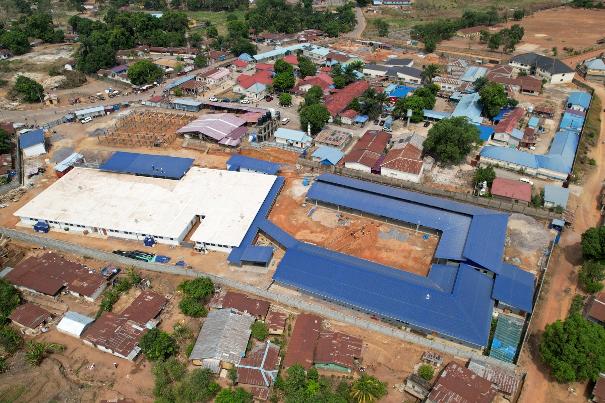 An aerial view of the Maternal Center of Excellence in Kono District, Sierra Leone on March 14, 2025. Photo by Chiara Herold / PIH