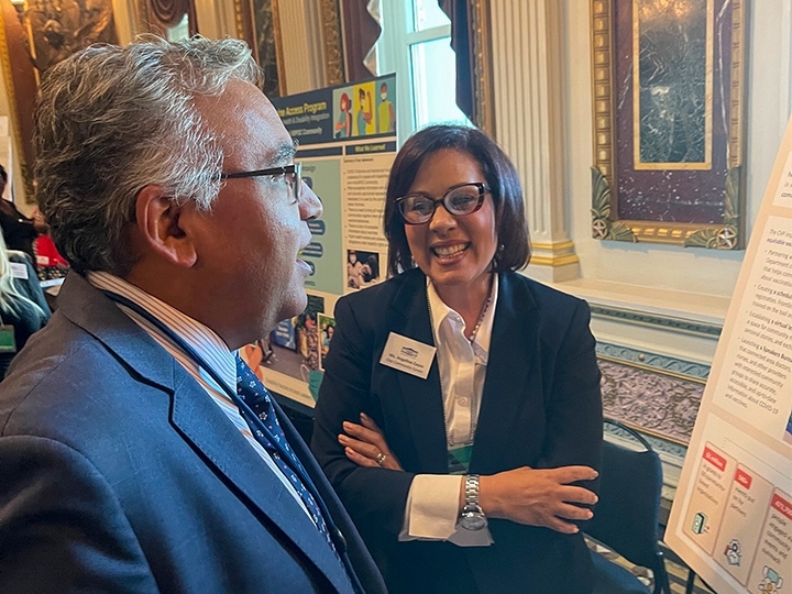 Angelina Zayas, Executive Director of GAP Community Center, speaks with Dr. Ashish Jha, White House COVID-19 Response Coordinator, about the Chicagoland Vaccine Partnership's work and shares reflections on the essential role of local organizations in improving community health and meeting people where they are. Photo courtesy of Max Clermont
