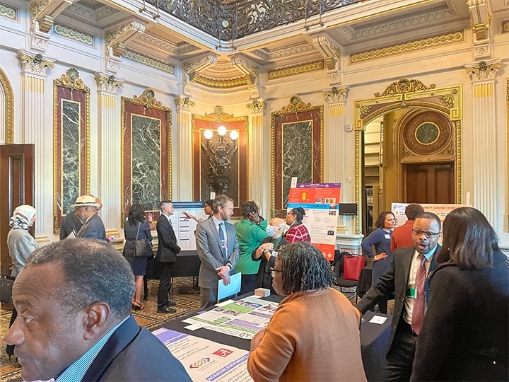 White House Summit on COVID-19 Equity attendees walk the poster hall and hear from presenters. Photo courtesy of Max Clermont