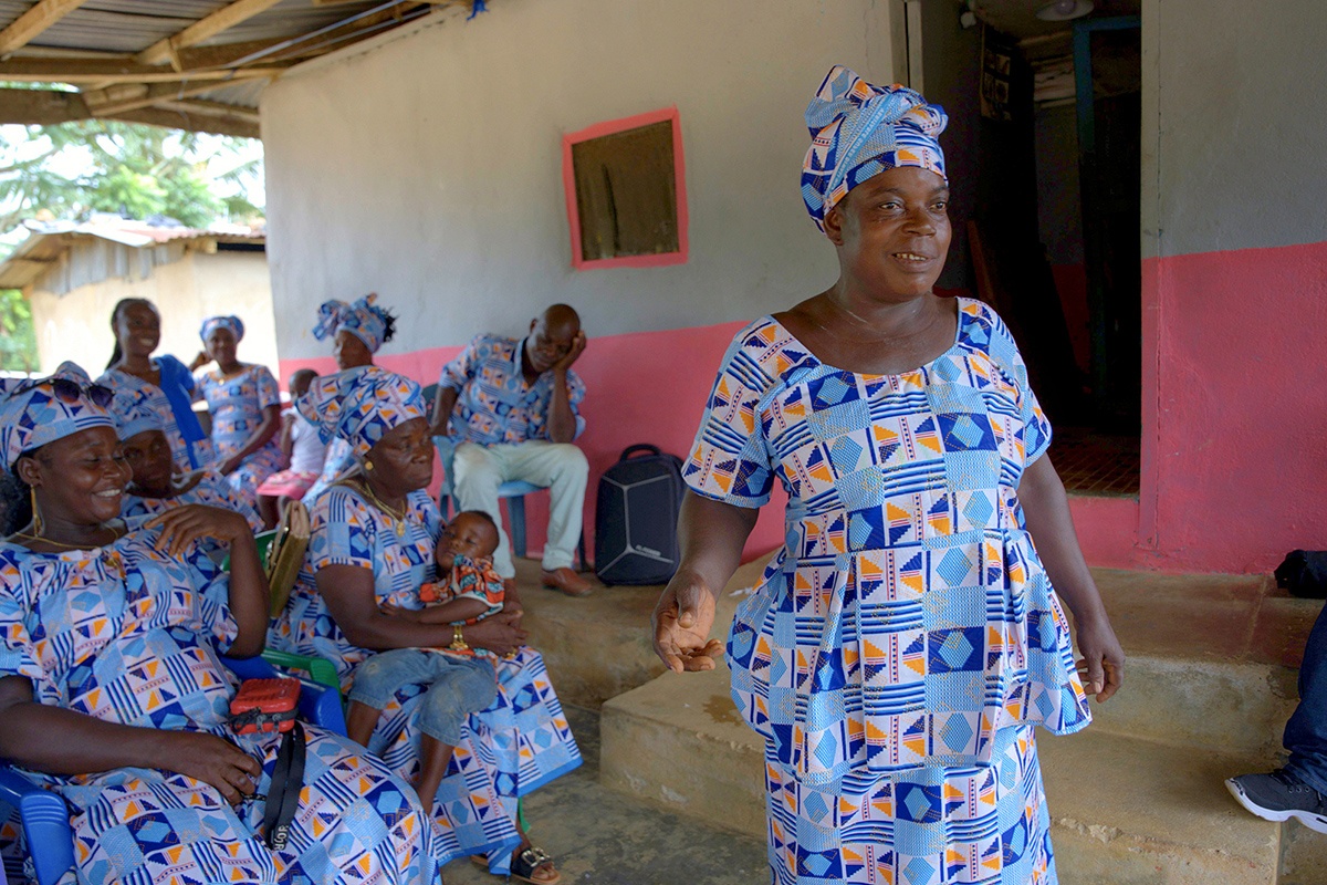 The joyful noise of Gedetarbo Women’s Group takes over the usual quietude of a small village in rural Liberia. Women well-dressed in colorful lappas and head ties sing a song in Grebo dialect, dance, and parade to the Clan Chief’s home. The thirteen-member Partners In Health (PIH)-supported group typically gathers once a week to receive advice and encouragement. This time, they’ve come together to celebrate and reflect on their recent achievements.