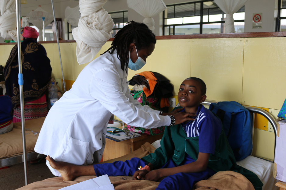 UGHE medical students on their clinical rotations use nearby Butaro District Hospital as a training ground. There, they spend time working with experienced doctors and learning through caring for patients. Much of that learning takes place through a four-week course on the practice of medicine.