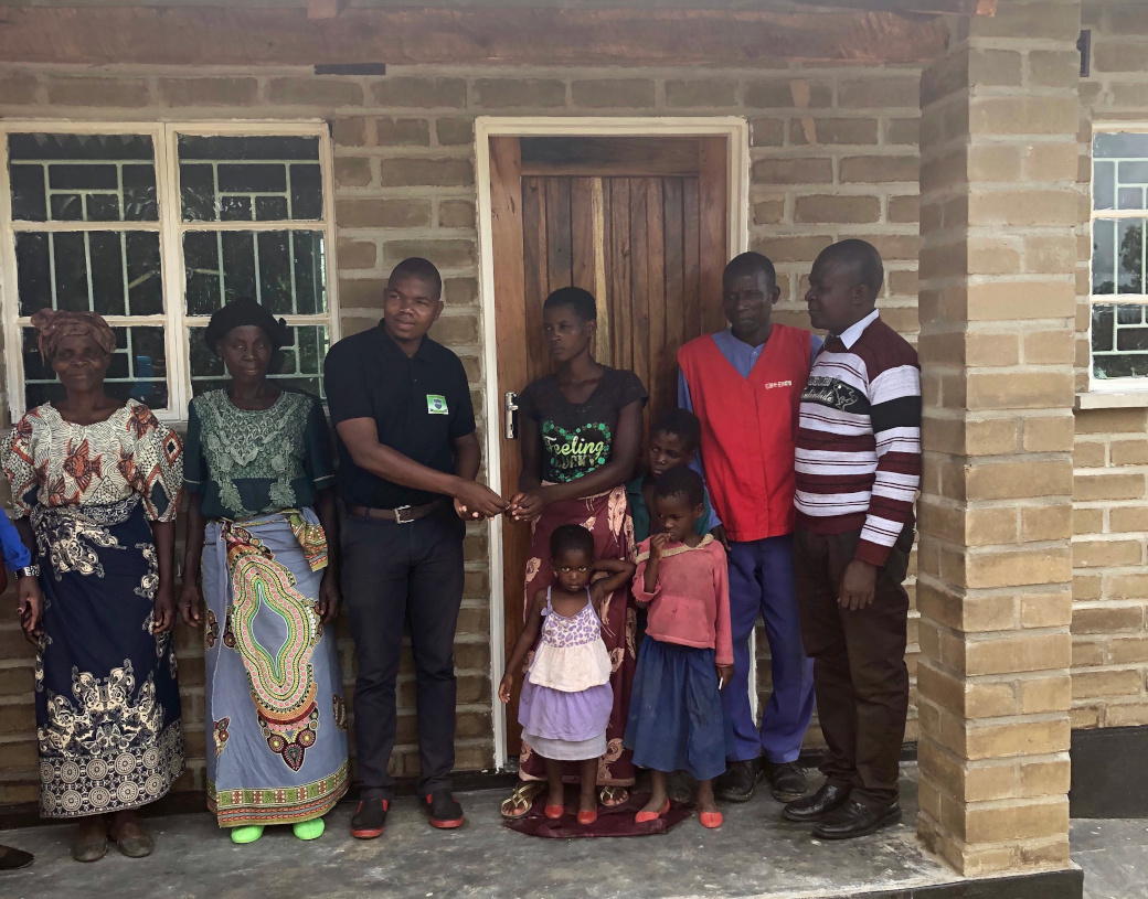 Rose Kapeni and her children at their new home, February 2019 in Neno