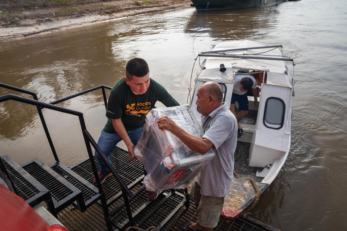 In mid-November, Apolinario and colleagues Alexander Gutiérrez, a radiologist, and Juan Herrera, a lab technician, traveled by boat across the Amazon river basin.