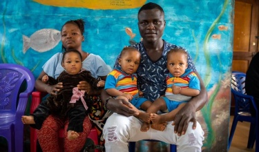 For Isata Biango and her triplets, Sarah, Caleb, and Isaiah, good health is possible because of maternal and malnutrition care at PIH-supported Wellbody Clinic in Sierra Leone.